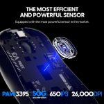 The Xlite V3 gaming mouse is an ergonomic marvel designed for right-hand palm grips, ensuring superior comfort during extended gaming sessions. It features a PAW3395 sensor, pulsar blue encoder, and fast, double-click-free optical switches, making it the ideal choice for competitive eSports. With lag-free 2.4GHz wireless technology, up to 100 hours of battery life, and a ±10% 1000Hz polling rate, it delivers both grip comfort and high-performance gameplay.